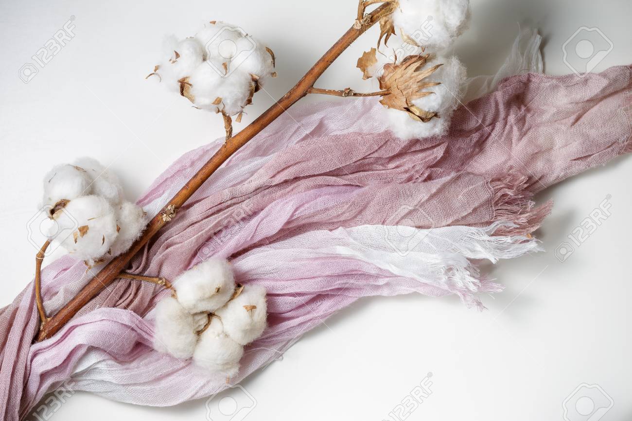 Cotton Plant Flower Branch With Purple And Pink Fabric Stock Photo Picture And Royalty Free Image Image 86388000